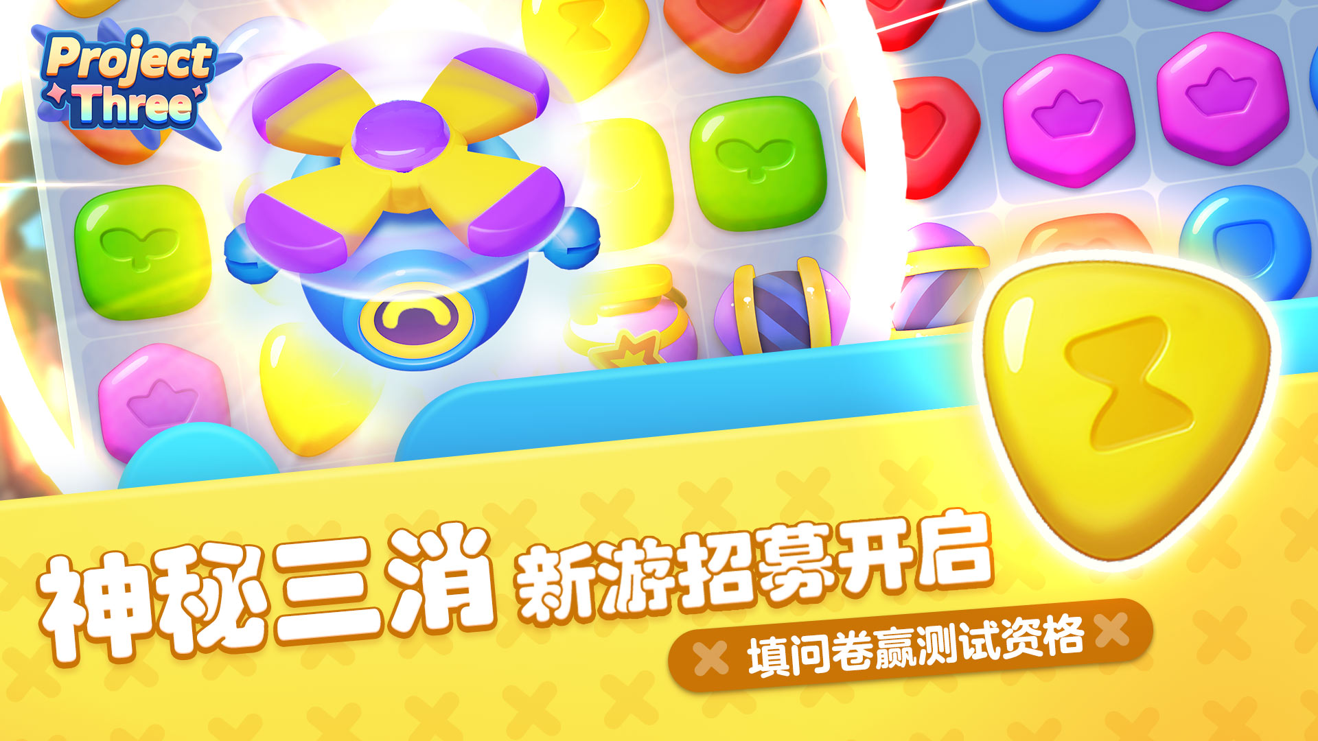 滑滑乐园,蛋仔集结!网易《蛋仔派对》IP衍生三消手游《Project Three》首轮测试资格招募中,参与招募赢测试号资格