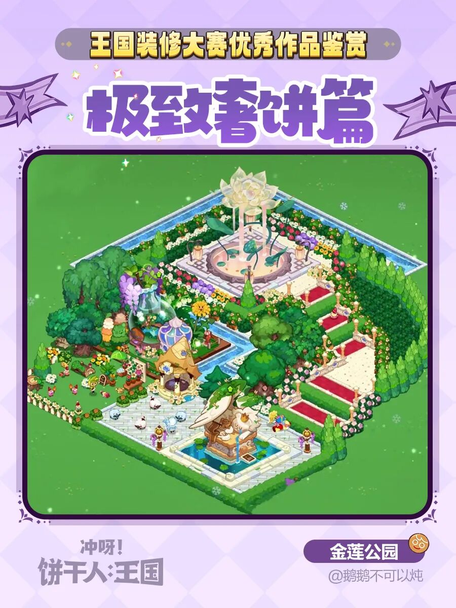 伴随着王国装修大赛的火热开展中,收到了饼干朋友们风格迥异的作品投稿:脑洞大开、极致奢华、基建狂饼……你会如何搭建自己的王国呢?