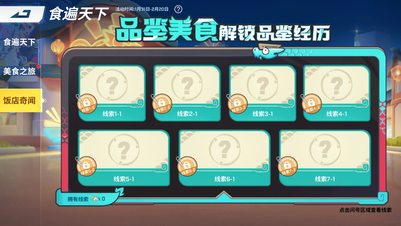 1月31日至2月20日,角色+时装礼包限时优惠来咯!完成任务获取步数,精美涂鸦、动作等福利免费领,其中拾取到的线索可以用来解锁龙城饭店奇闻,了解美食家龙小侠的身世之谜呐~