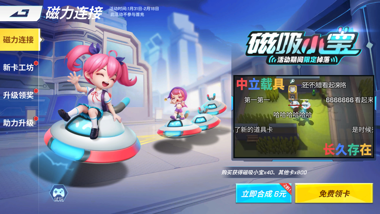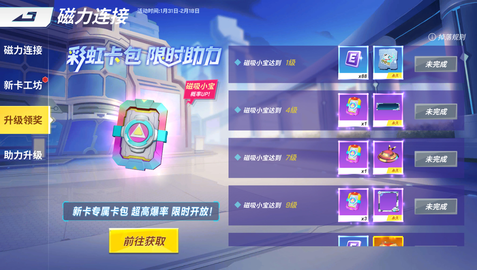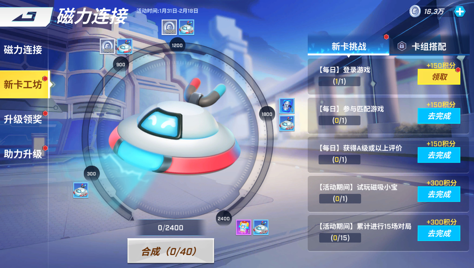还可以通过在【新卡工坊】完成新卡挑战合成磁吸小宝~