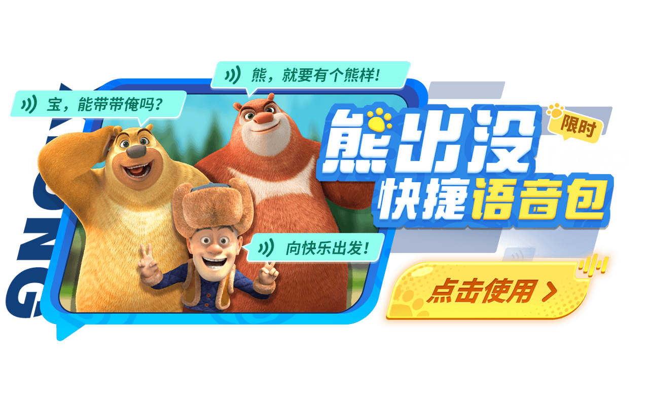 1月31日至3月27日,少年们可以在活动期间体验到原汁原味的熊出没语音啦,上线即用!快来看看,是不是你记忆中的声音吧~