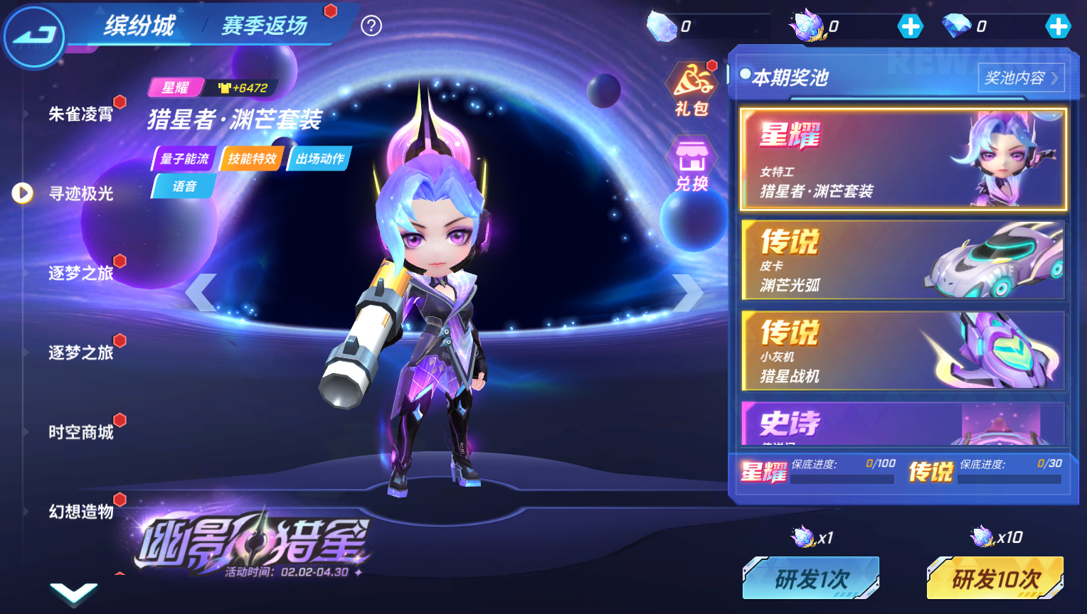猎星一事竟有些眉目...这正是拨云见日之时!2月2日至4月30日,女特工星耀时装【猎星者·渊芒套装】和【皮卡·渊芒光弧】、【传送门·星渊入口】、【小灰机·猎星战机】来袭!