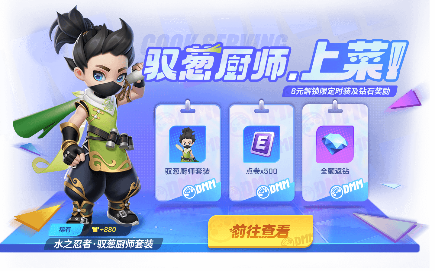 2月23日至3月21日,小厨上才艺!尝尝泷的手艺怎么样?【水之忍者·驭葱厨师套装】超低折扣即可解锁!