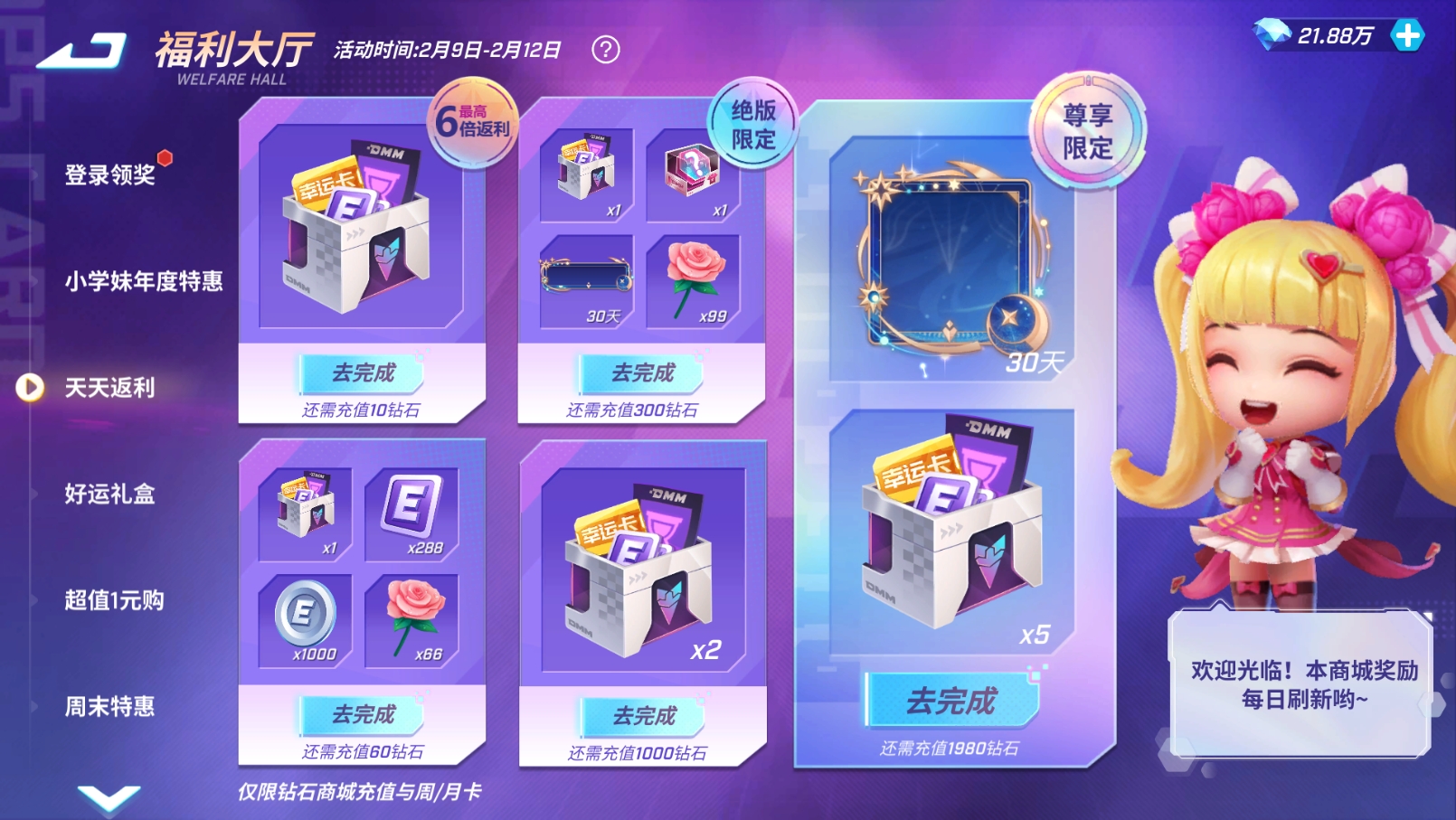 2月9日至2月12日,2月的返利来啦!少年们看好对应时间,千万不要错过哦~