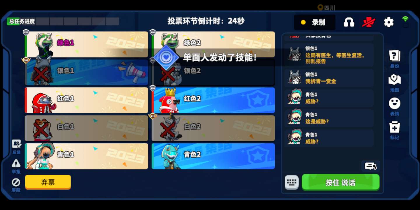 青色威胁我们中立,我直接投青色了,我经不起这个威胁