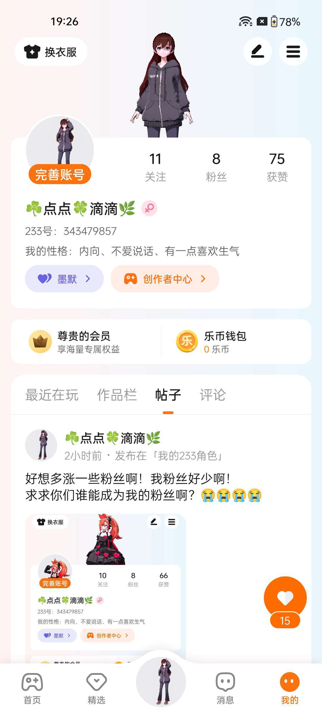 哎!我的关注、粉丝、获赞,从前天一直卡到今天,一直没涨过我的帖子真的没人喜欢吗?有人喜欢,我关注他她