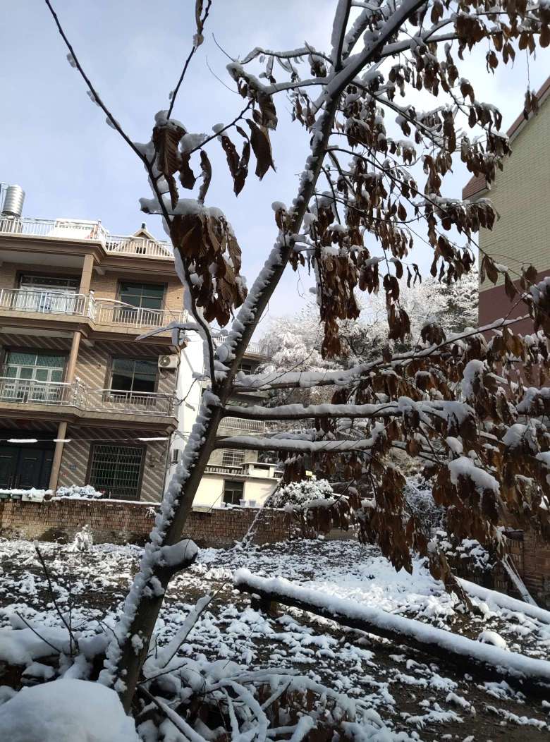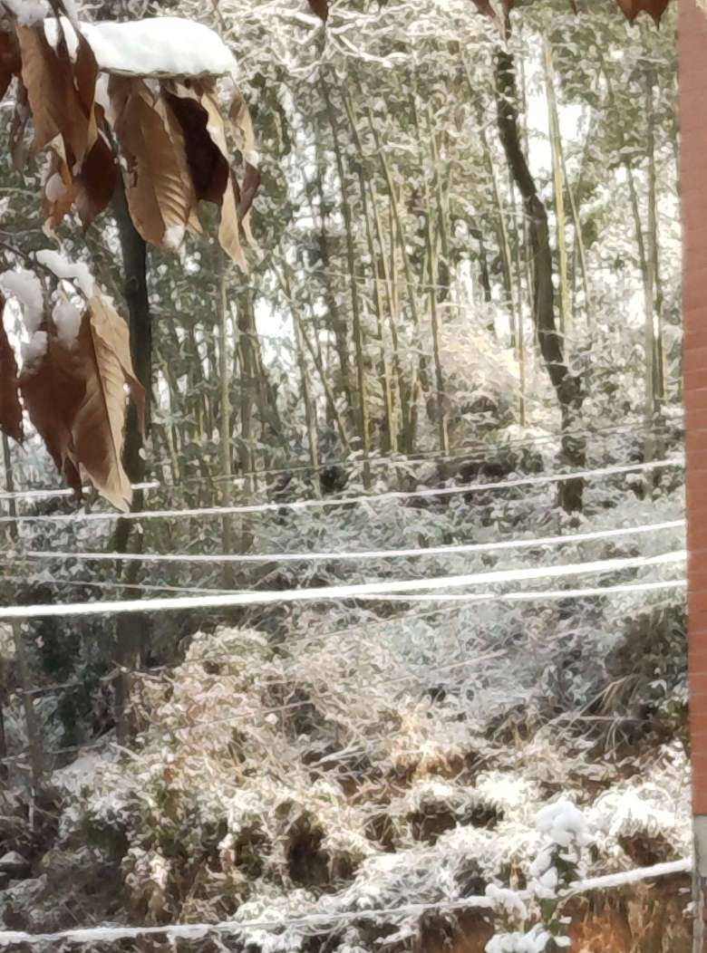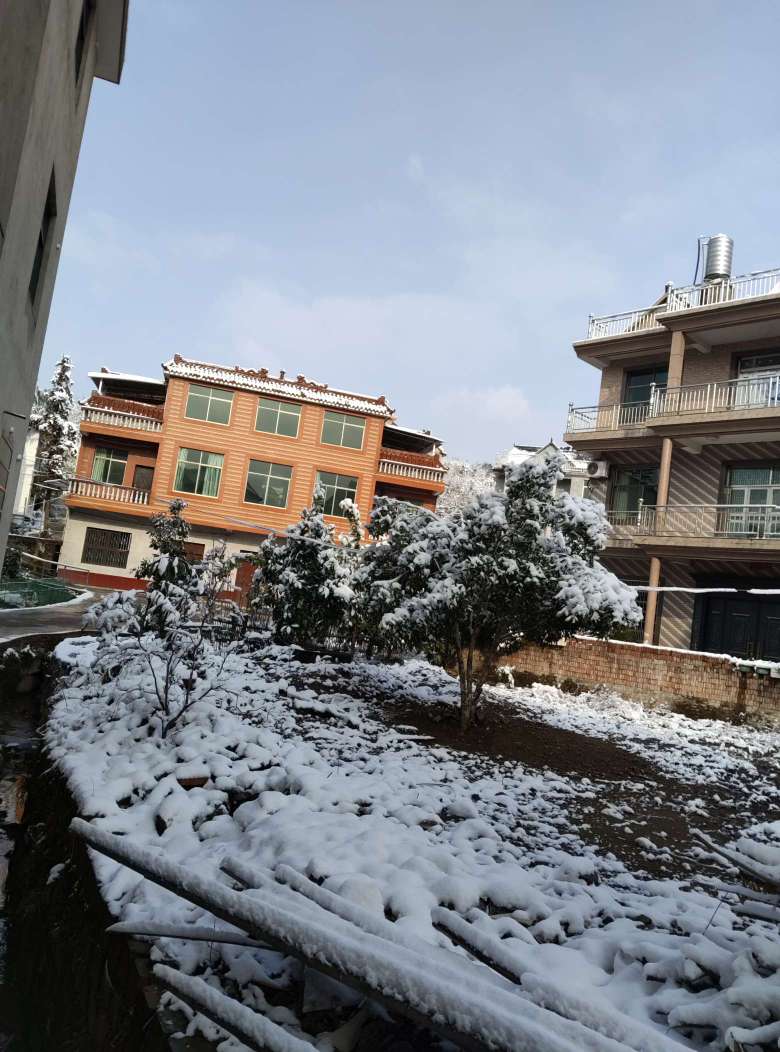 外面下了好大的雪,我堆了一个小雪人。