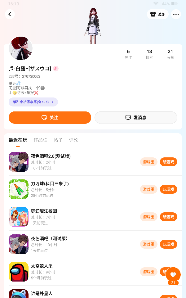 找游戏搭子,要求每天最好在线(⑉°з°)-♡