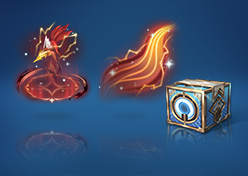 购买礼包必得红蓝对决(1日),可额外随机获得以下之一:伽罗、铠、马超专属击败-琥珀纪元、专属拖尾-琥珀纪元、铠-曙光守护者、伽罗-箭羽风息、铠-龙域领主、伽罗-花间巫女、马超-幸存者、皮肤碎片x2、荣耀积分x20、新品皮肤抽奖券x1。累计150次必得全部局内特效。