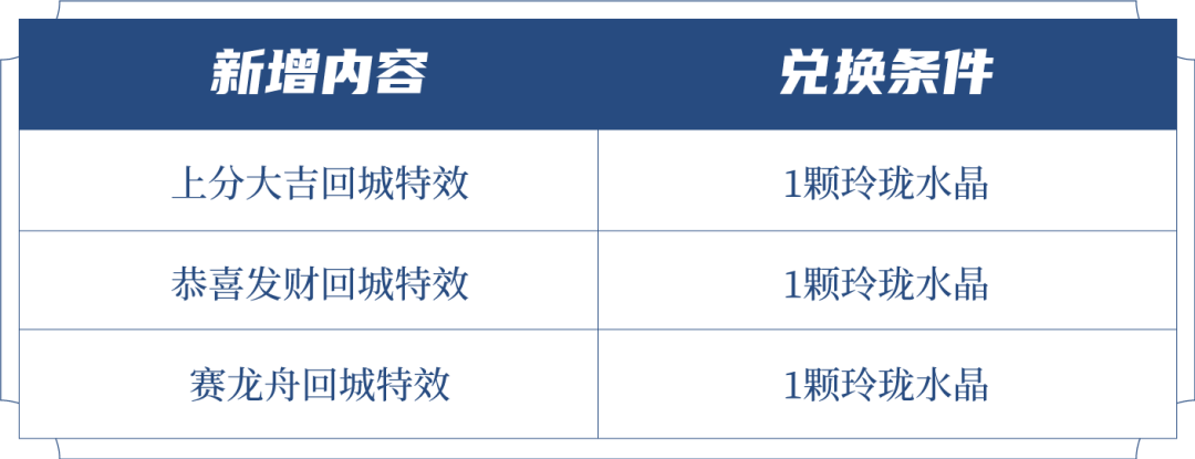 ♢ 玲珑水晶兑换新增: