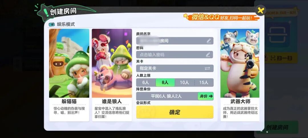 点击下方【创建房间】按钮