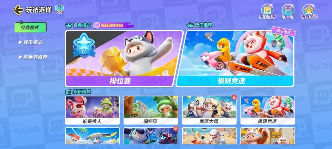 通过广场进入【玩法选择】界面