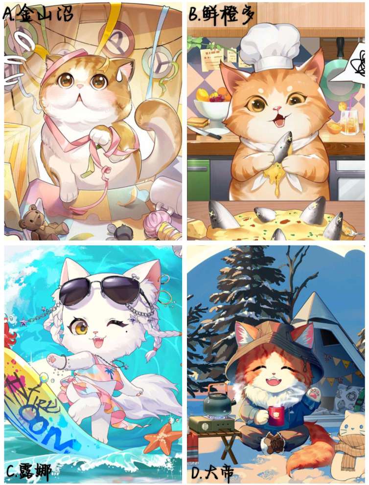 ②在下方四个选项中选出你最喜欢的猫,并在下方评论区回复相应编号+猫咪名称即可参与