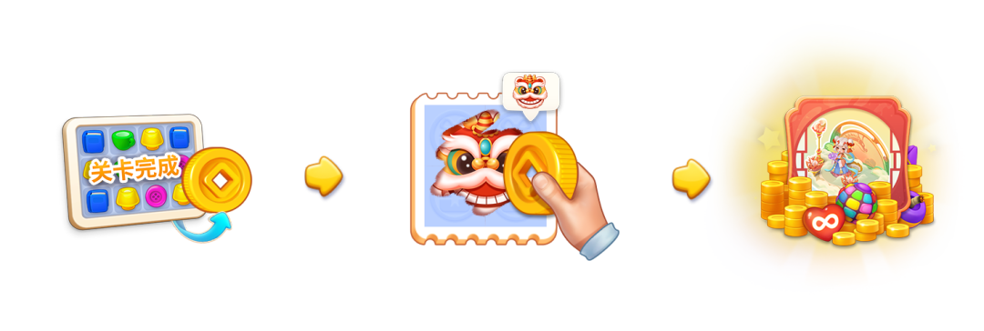 闯关收集“灯笼”进行皮肤装扮的兑换,所有皮肤装扮兑换后,可获得一座“金牛花灯”装扮(皮肤中心处展示)