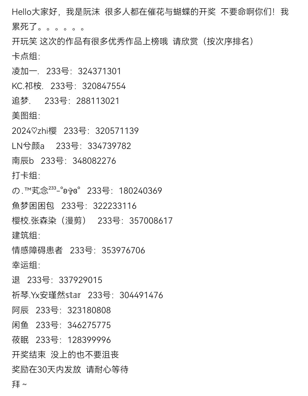 【花与蝴蝶】活动开奖