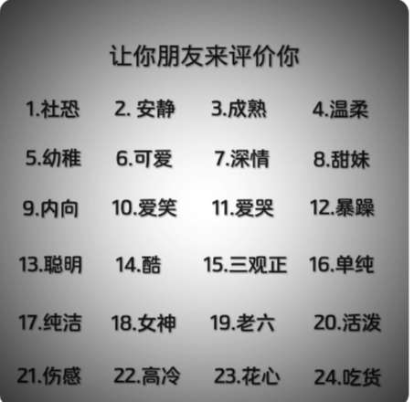 让你朋友评价你。。。。。