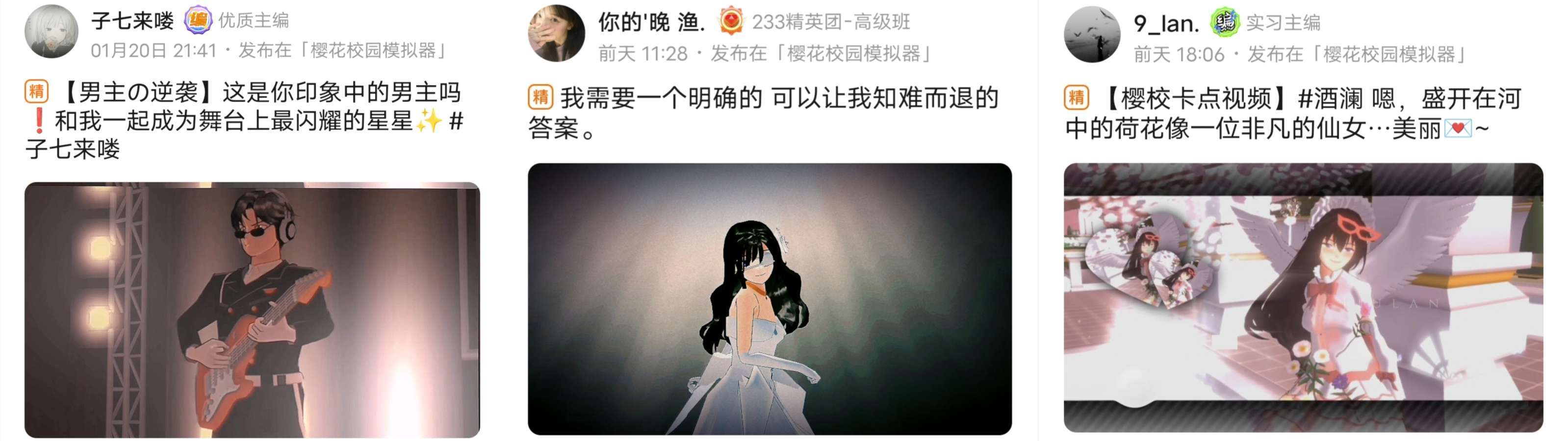 我们先从樱花校园模拟器游戏圈开始说起,众多内容创作中,创作内容较多的板块(分组)是卡点、建筑、美图。