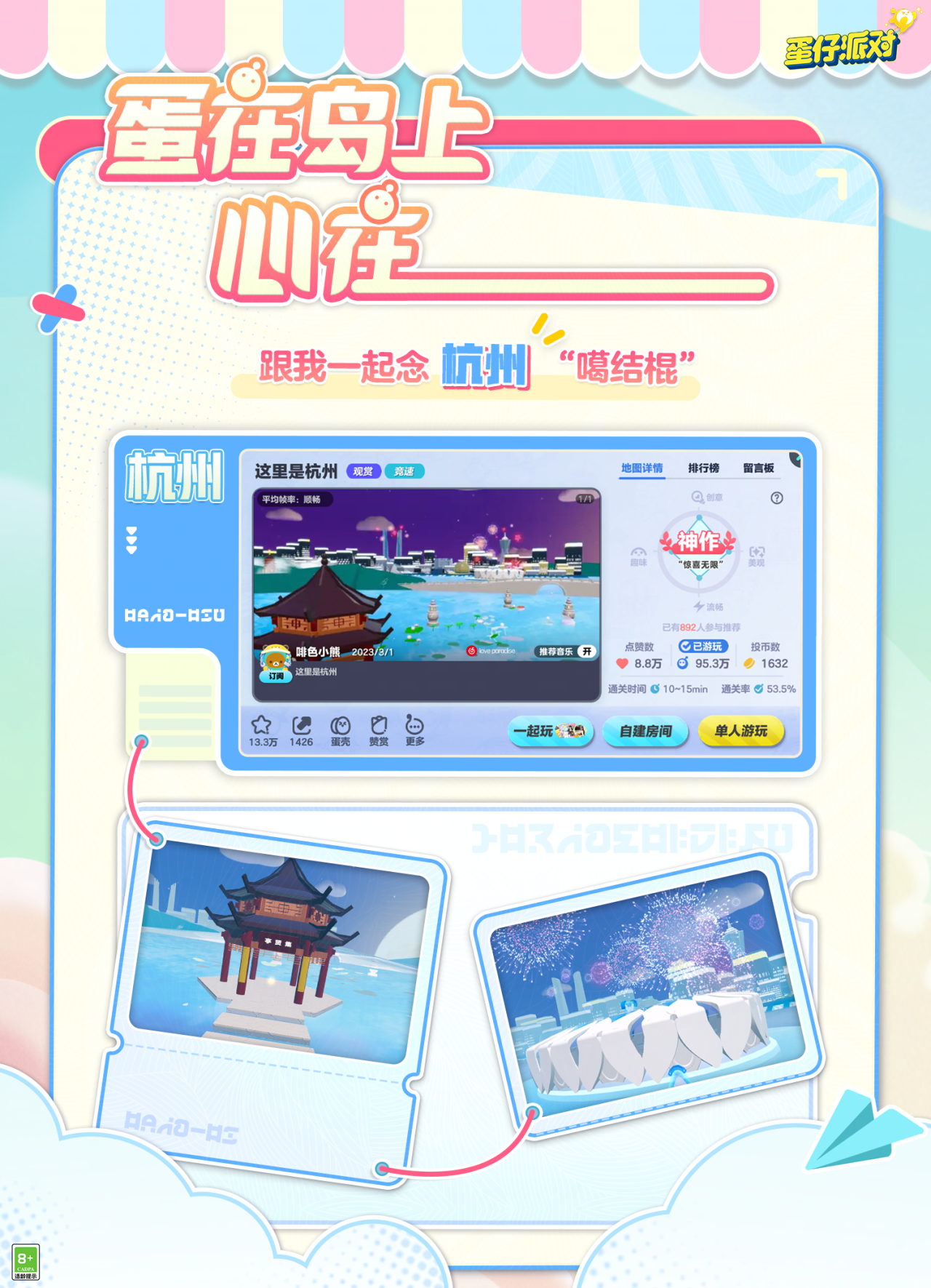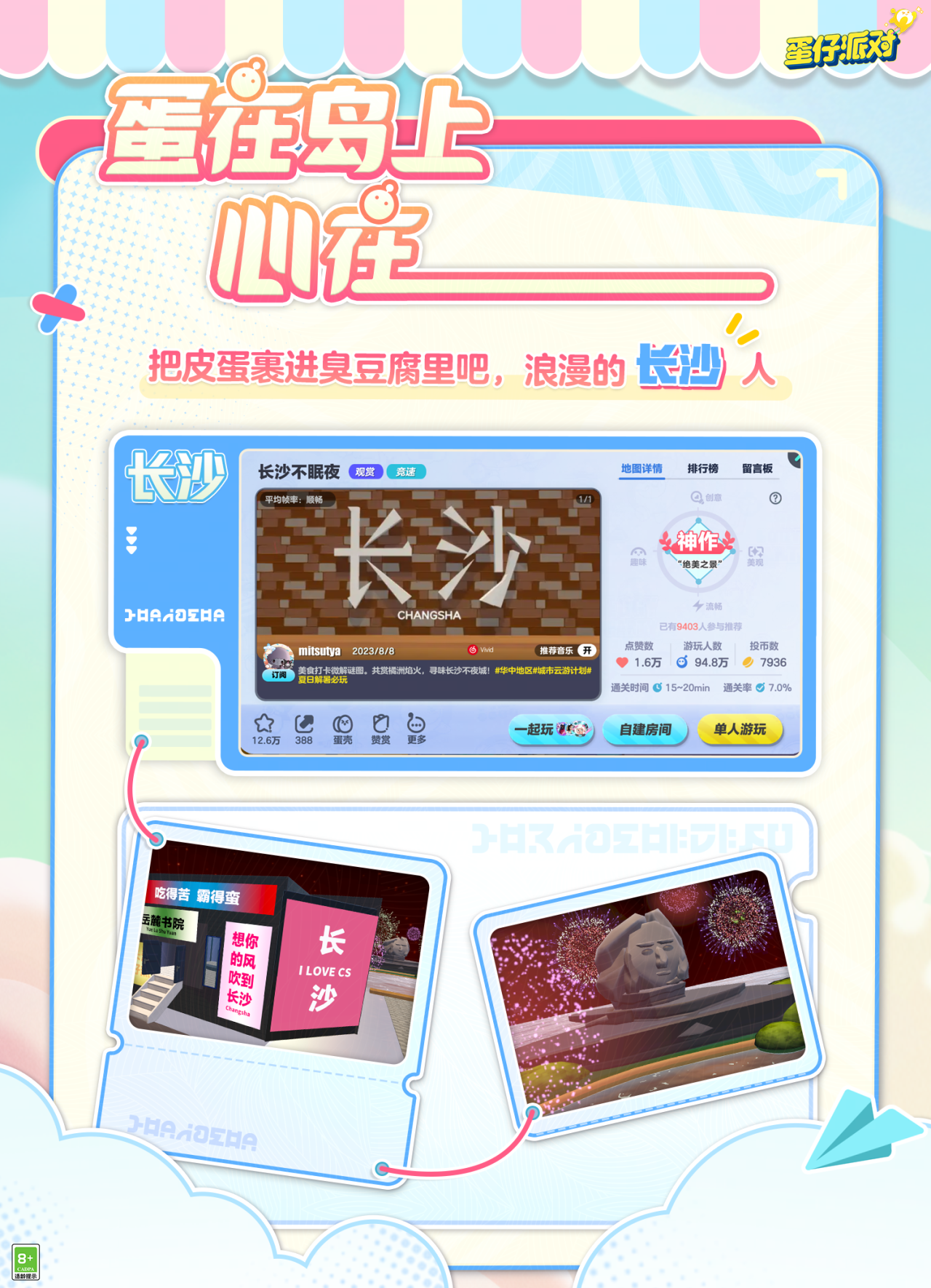近期各地文旅疯狂登上热榜头条 各色美景美食层出不穷 吸引蛋仔们是身在岛上,心在全国~ 为满足广大蛋仔们足不出户 游历打卡火爆城市的心愿! 皮蛋旅行团在本周末推出超高性价比套餐 共计6大地图任君选择~