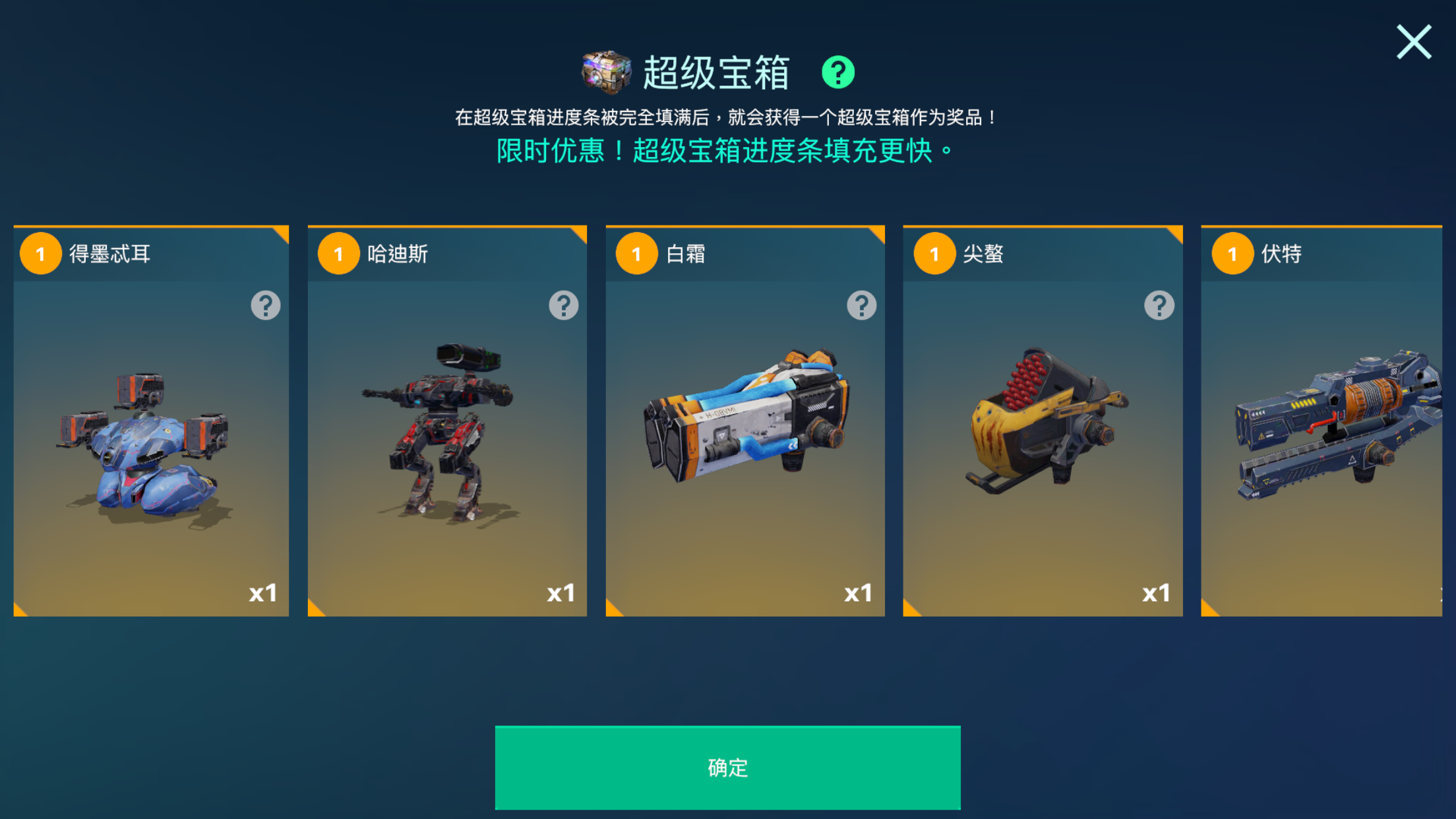 ②指挥官每次战斗结束后均可获得一定数量的钥匙币,在黑市中可以使用钥匙币开启宝箱。在抽取达到一定次数后,将获得超级宝箱,内含[幻影]、[夜莺]等强力橙色机甲以及[白霜]、[伏特]等强力橙色武器。 ③解锁贵宾特权,可为大加提供额外50%的银币与战斗经验获取效率,并减少升级机甲与武器需要的时间,指挥官可以若是想更高效的解锁高等级的机甲与玩法,可以考虑解锁。 以上就是本期的全部内容,供指挥官们参考,希望对大家有帮助~我们下期见~