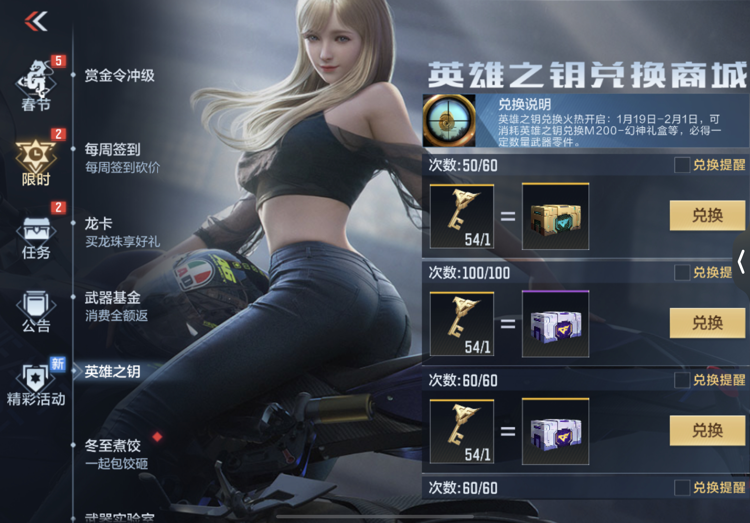 大型新春钥匙回馈活动正在进行中,领完钥匙后直接去钥匙兑换里兑换自己心仪的道具,美滋滋。心动不如行动,赶快上线参与吧!