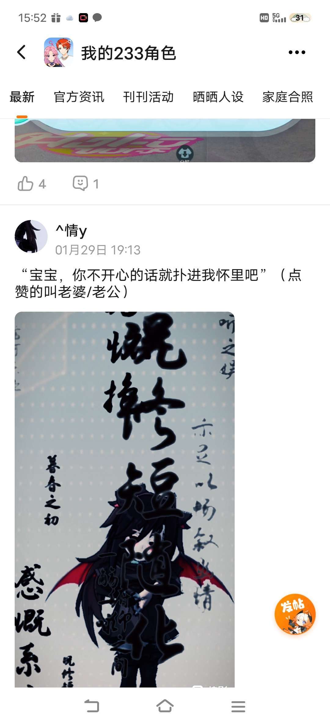 “宝宝,你不开心的话就扑进我怀里吧”(点赞的叫老婆/老公)