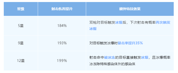 核芯特技 装备刺骨冰锥核心时 射击造成175%伤害 且副手射击伤害不再衰减 目标每损失25%生命值 双枪造成5%额外伤害