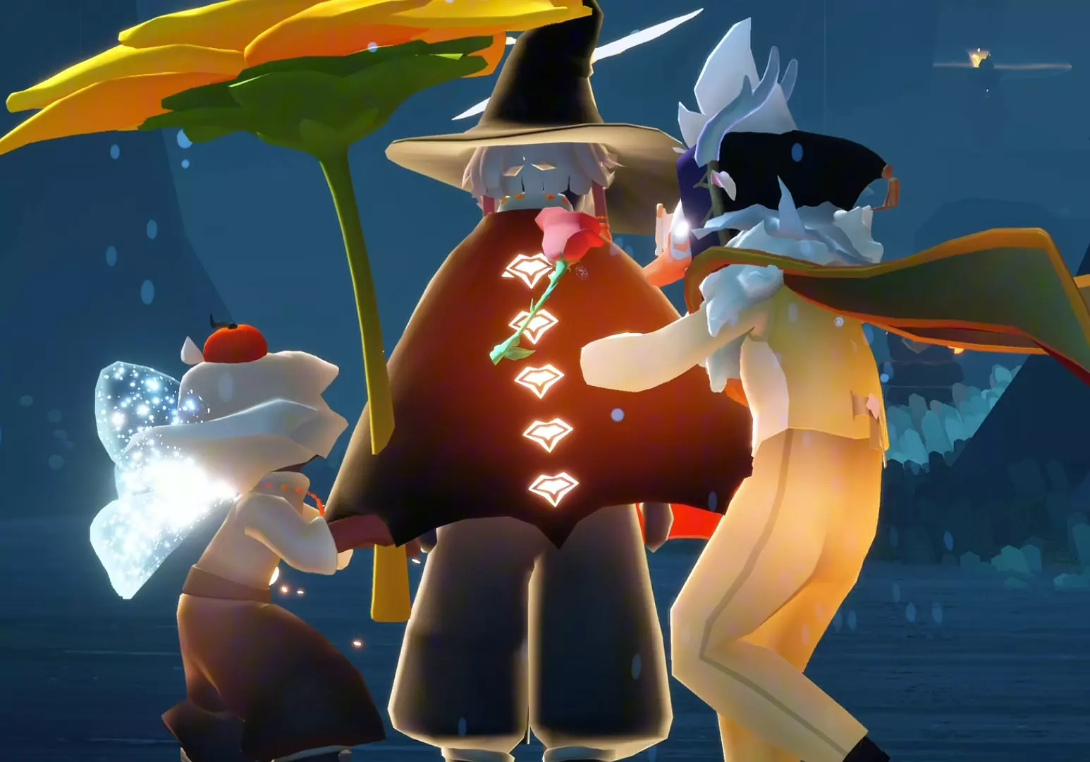 这是一篇《光遇》的趣味图文帖,展示了游戏里两个巫师装扮的玩家,一人自称“公主”,一人讲了被校霸抽嘴巴约架后又被抽最终服软的搞笑段子,尽显玩家整活趣味。