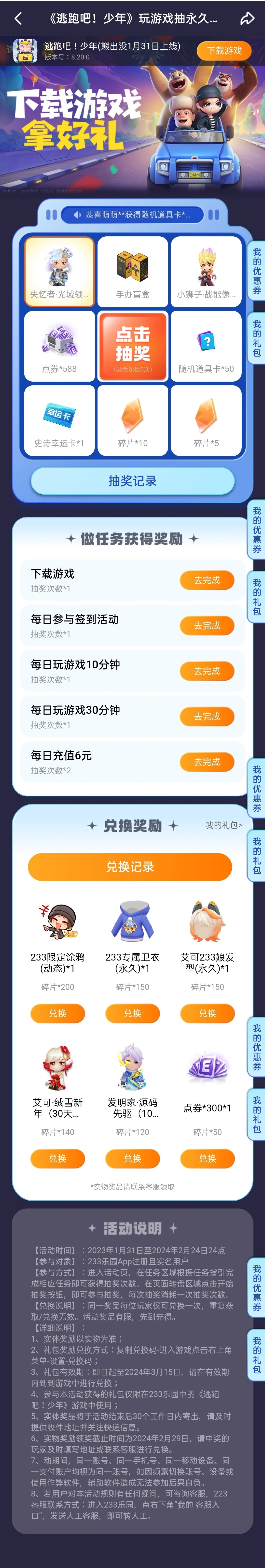 01 《逃跑吧!少年》玩游戏抽永久时装、限定盲盒手办!