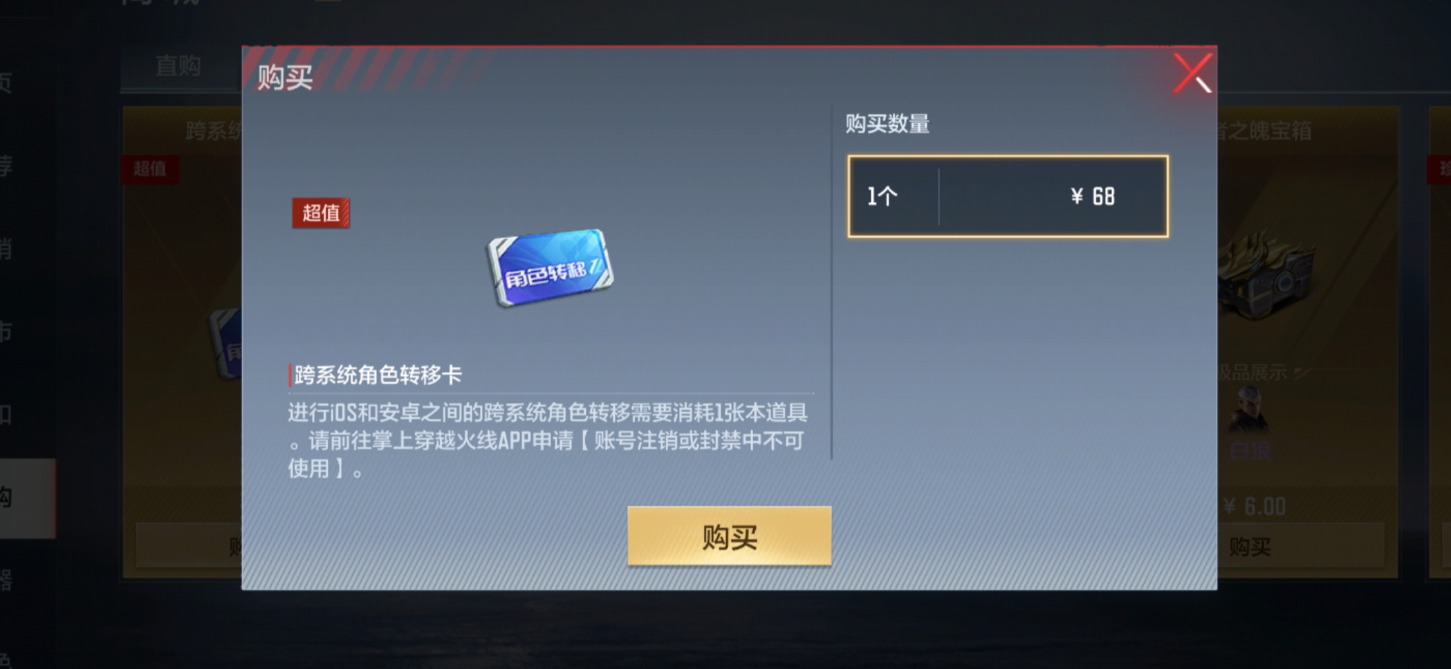 当然,没转区的CFer请勿尝试点击“检测”按钮。即使尝试了,也会提示你系统检测活动期间内无跨系统角色转移操作。