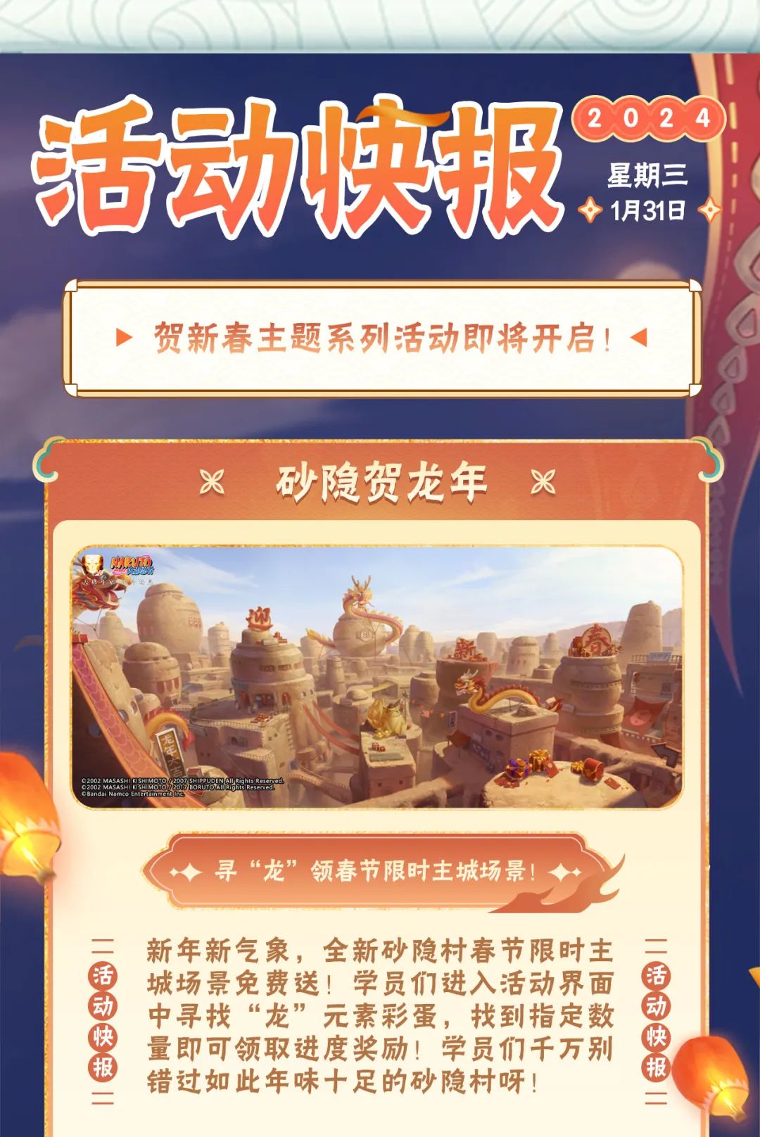 【活动爆料】新春活动强势来袭,砂隐村春节限时主城场景免费送!