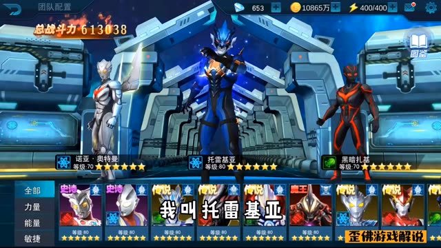 这是《奥特曼传奇英雄》的游戏解说内容,展示了迪迦奥特曼、怨灵鬼恋鬼等角色,呈现了怨灵之战噩梦关卡的战斗场景,还展示了强化雷德王的英雄界面,趣味提及迪迦欠下巨额电费的话题。