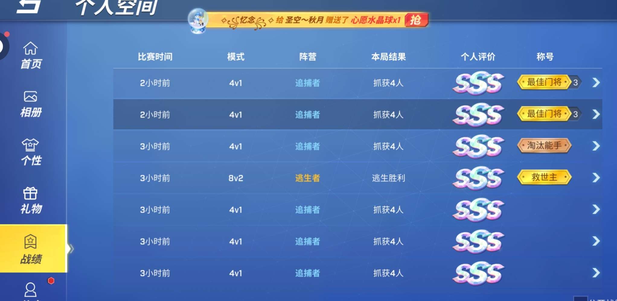 逃跑吧少年·战绩分享