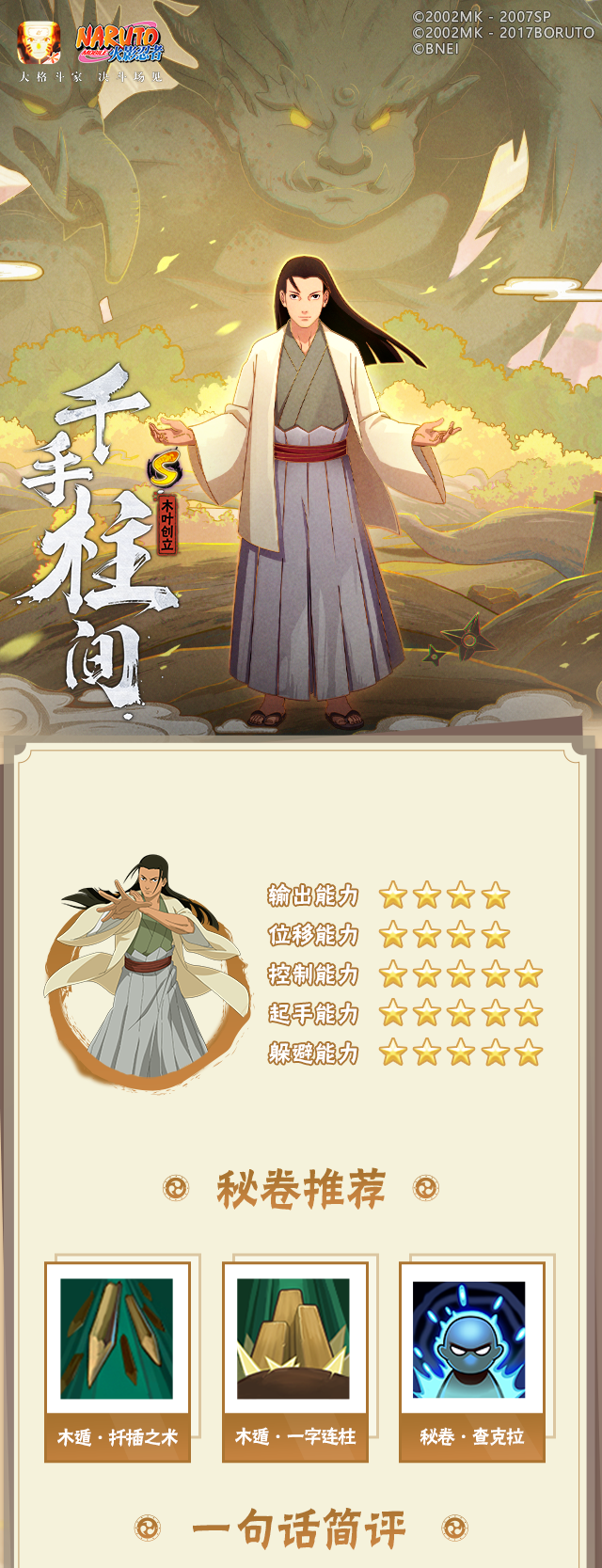 千手柱间「木叶创立」拥有两个专属秘卷。