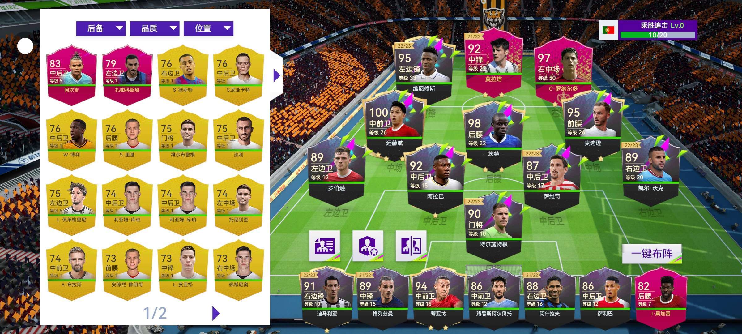 刚改完阵容用一张88,一张90一张91。换了多纳鲁马