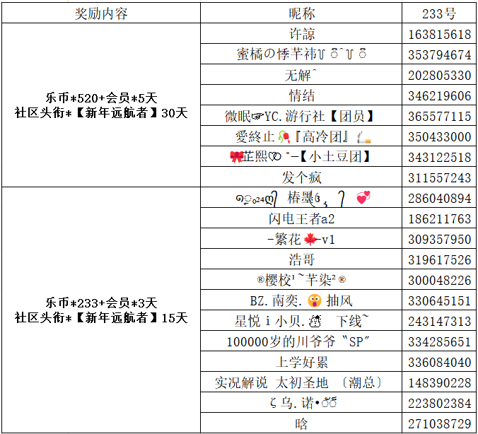 新年大红包:乐币*233+会员*3天+社区头衔*【新年远航者】15天——12名