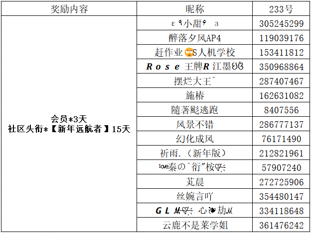 新年小红包:会员*3天+社区头衔*【新年远航者】15天——15名