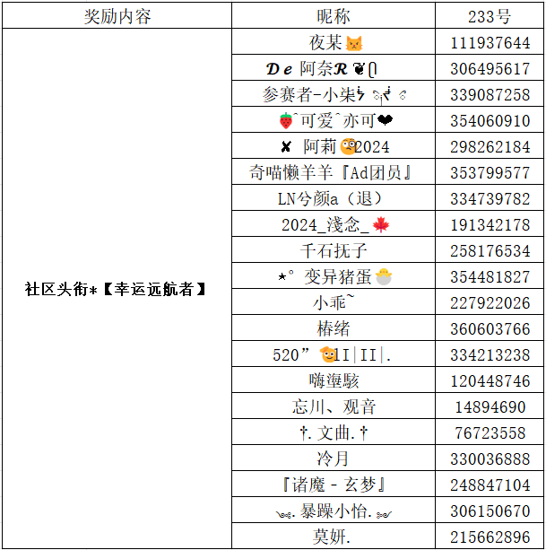 开奖啦~恭喜以下远航者们中奖!