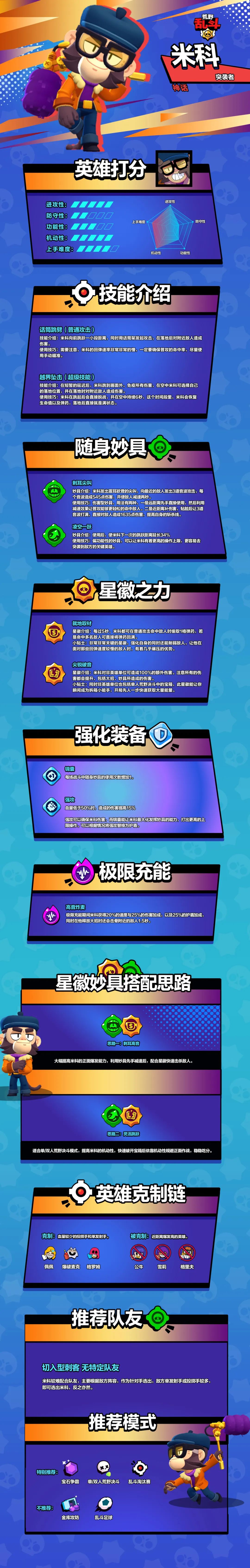 “一部电影不能没有音效师 乱斗场上也不能没有米科!” 跳跃起飞,玩弄强敌! 脆皮投手的苦日子来咯! 还是免费领取的英雄 各位斗士们快快培养起来吧~ 本期秒懂英雄深度解说之 【跃动巨星-米科】