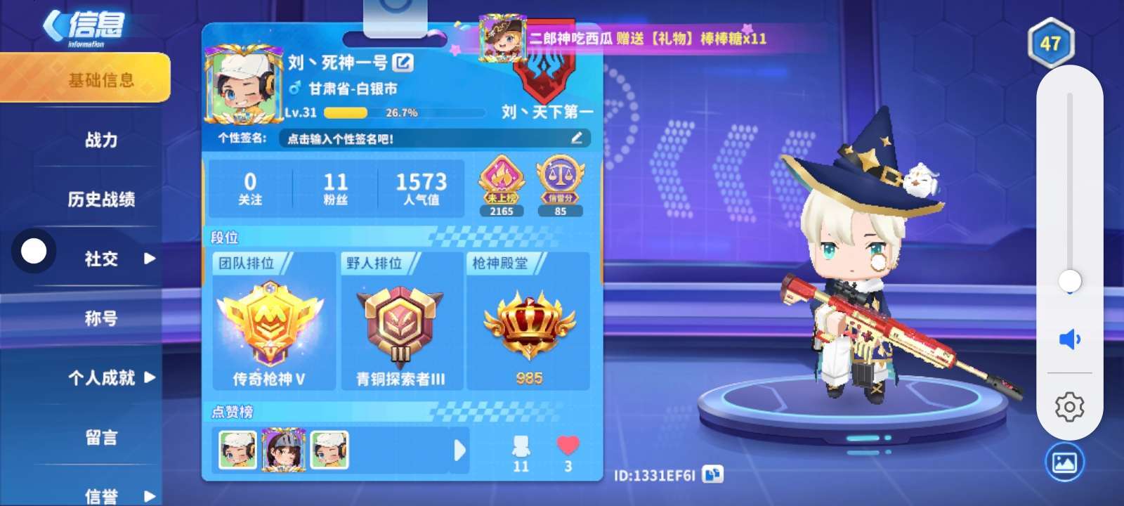 刘丶天下第一招人了前十进给精英。在随便抽一个当副队。欢迎入职