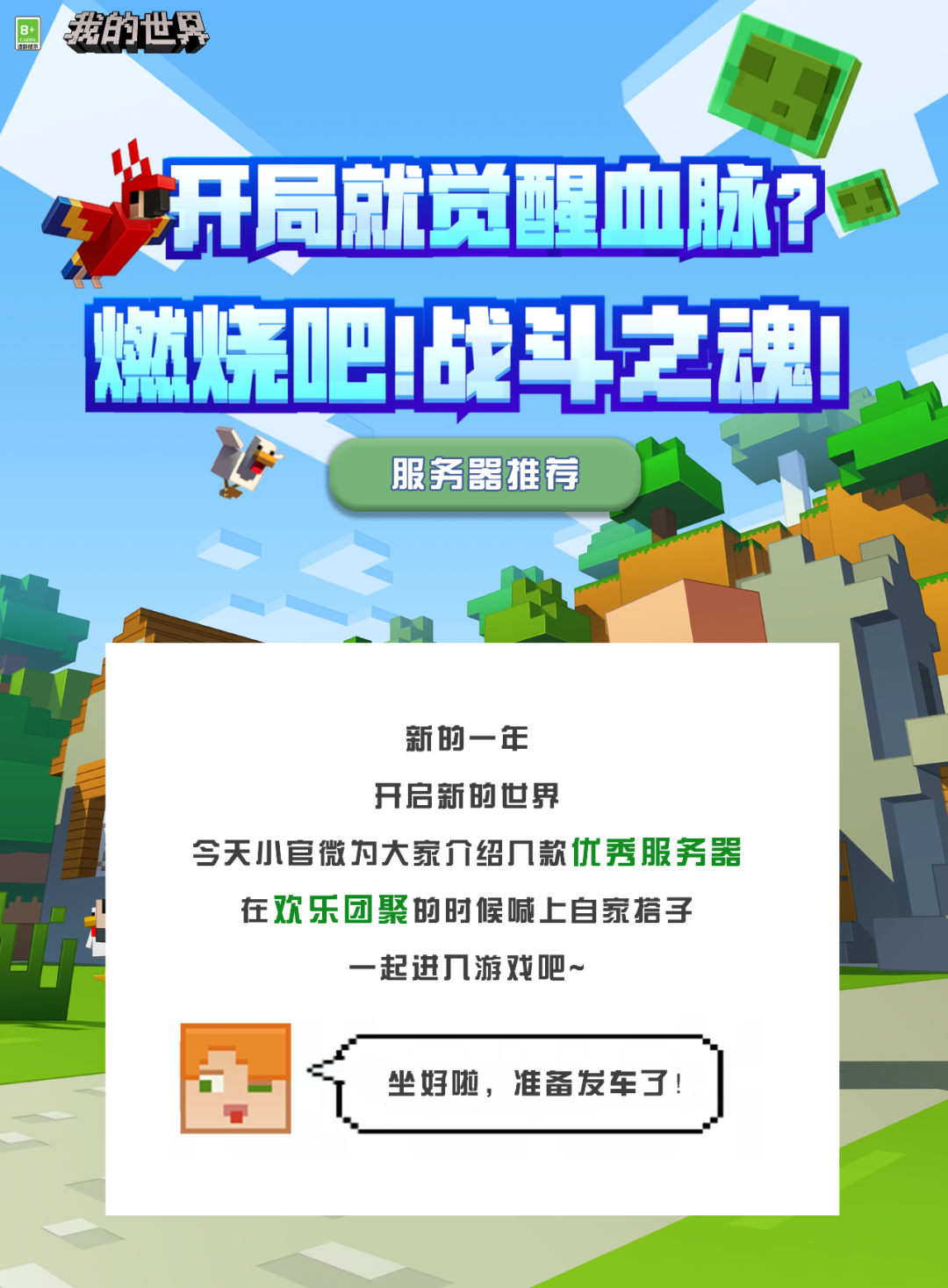 新的一年开启新的世界 今天又是熟悉的服务器推荐指南~ 冒险家们可以在欢聚之时 和小伙伴们一同游玩 更多精彩内容 请持续关注小精灵哦~