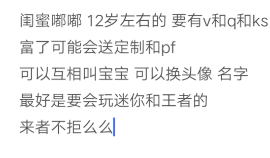 鬼米dd 12岁左右的来 有v有q 会玩王者和迷你 有ks 来者不拒啦~