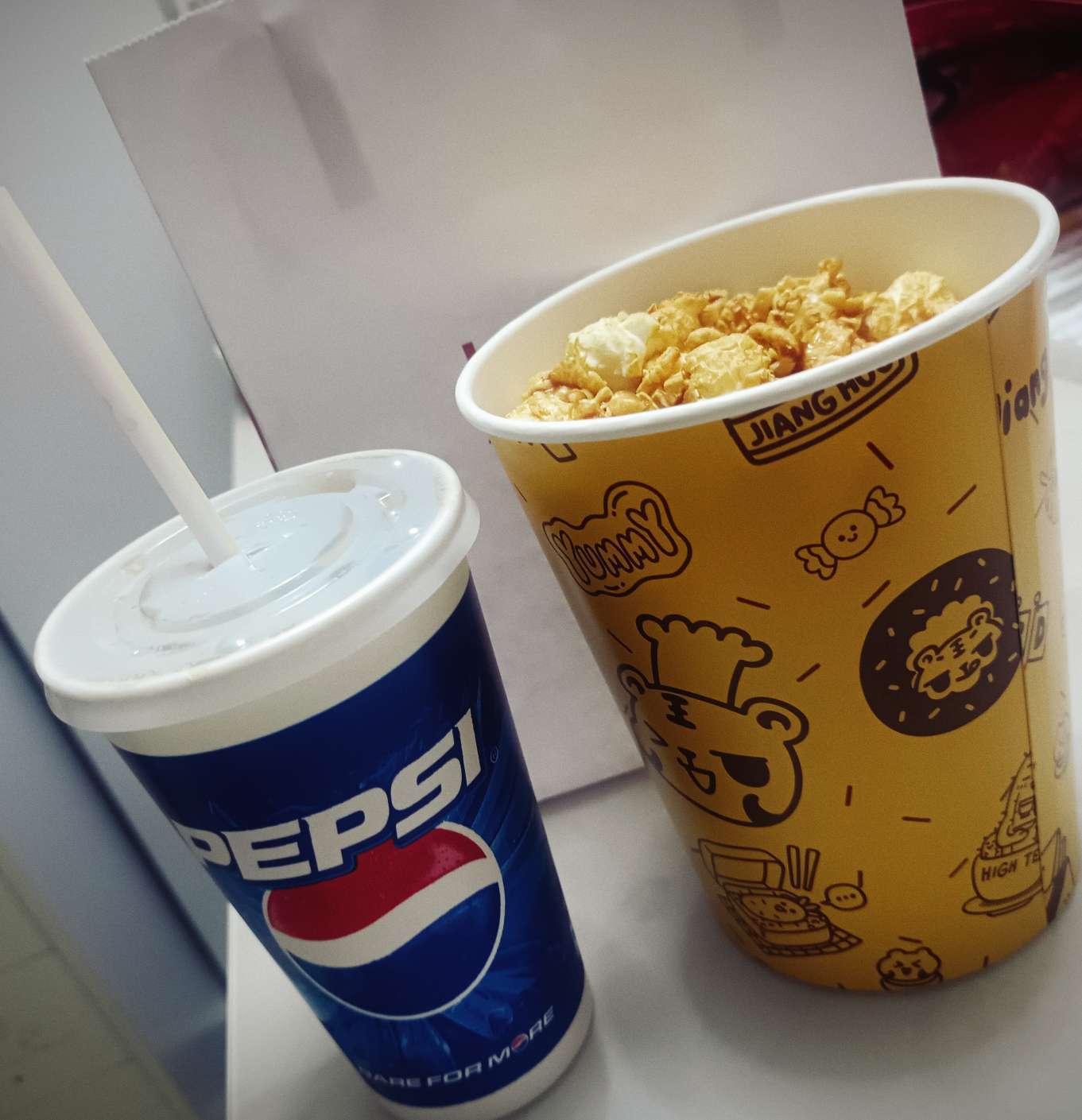 喝着小饮料,吃着爆米花。看个小剧,这才叫美滋滋