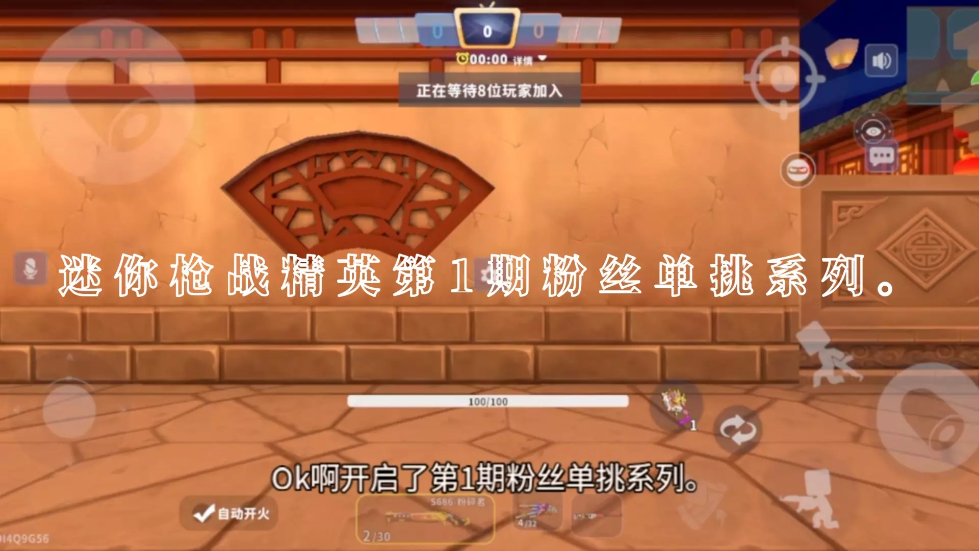 这是《迷你枪战精英》的对战内容展示,玩家使用双持UZI-冰焰双生在色彩鲜亮的卡通风格地图中战斗,达成双杀,还收到其他玩家的粉丝互动,配文传递要尊重他人的理念。