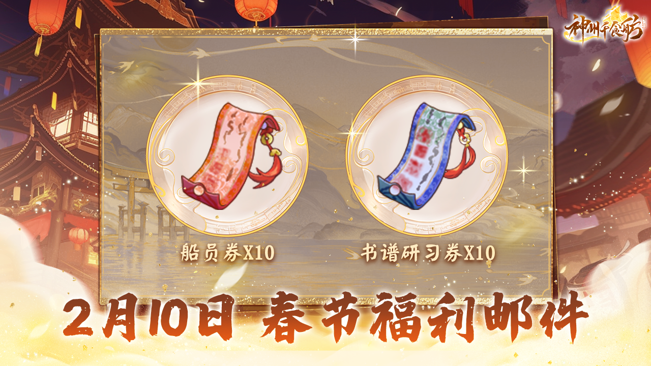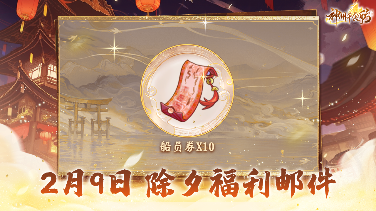 🎉共欢新故岁,迎送一宵中!今年是神州千食舫陪伴各位舫主一起度过的第一个春节~舫会的大家都非常珍惜这次机会,同时也为了感谢舫主这段时间对神州千食舫的支持与喜爱,所以舫会委托粥粥向舫主发来新春福利~