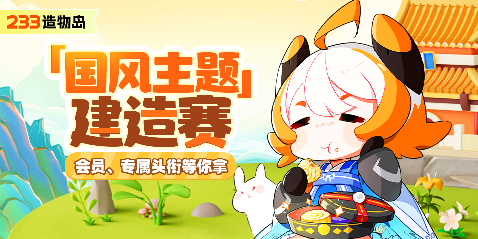 👏参与鼓励奖(活动期间内➡️从创作者中心点击参加活动➡️选择造物岛游戏圈,带上标题 国风 发帖➡️且作品符合国风主题即可100%获奖):会员天卡*1+头衔【233造物团-造物萌新】*7天