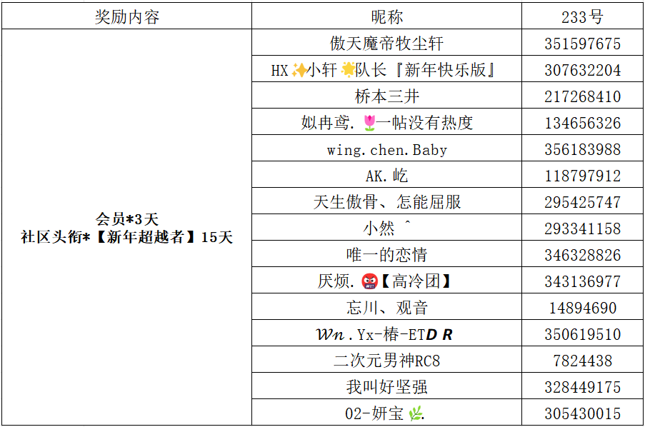 新年小红包:会员*3天+社区头衔*【新年超越者】15天——15名