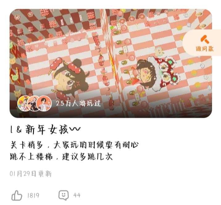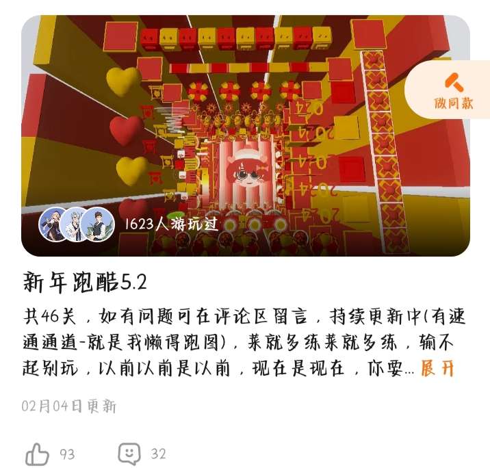 是个新年跑酷。有强迫症的人也可以来玩,这个地图很简单的。也很适合新手宝宝