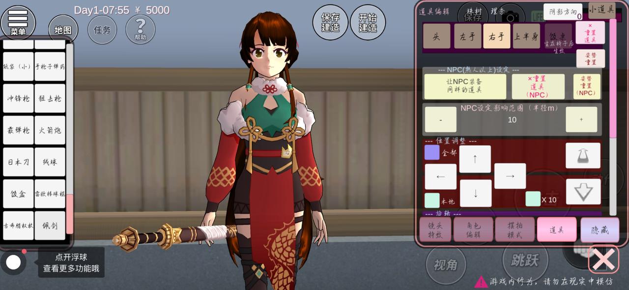 首先打开樱花-进入游戏-菜单-角色编辑器-【道具(右手)】