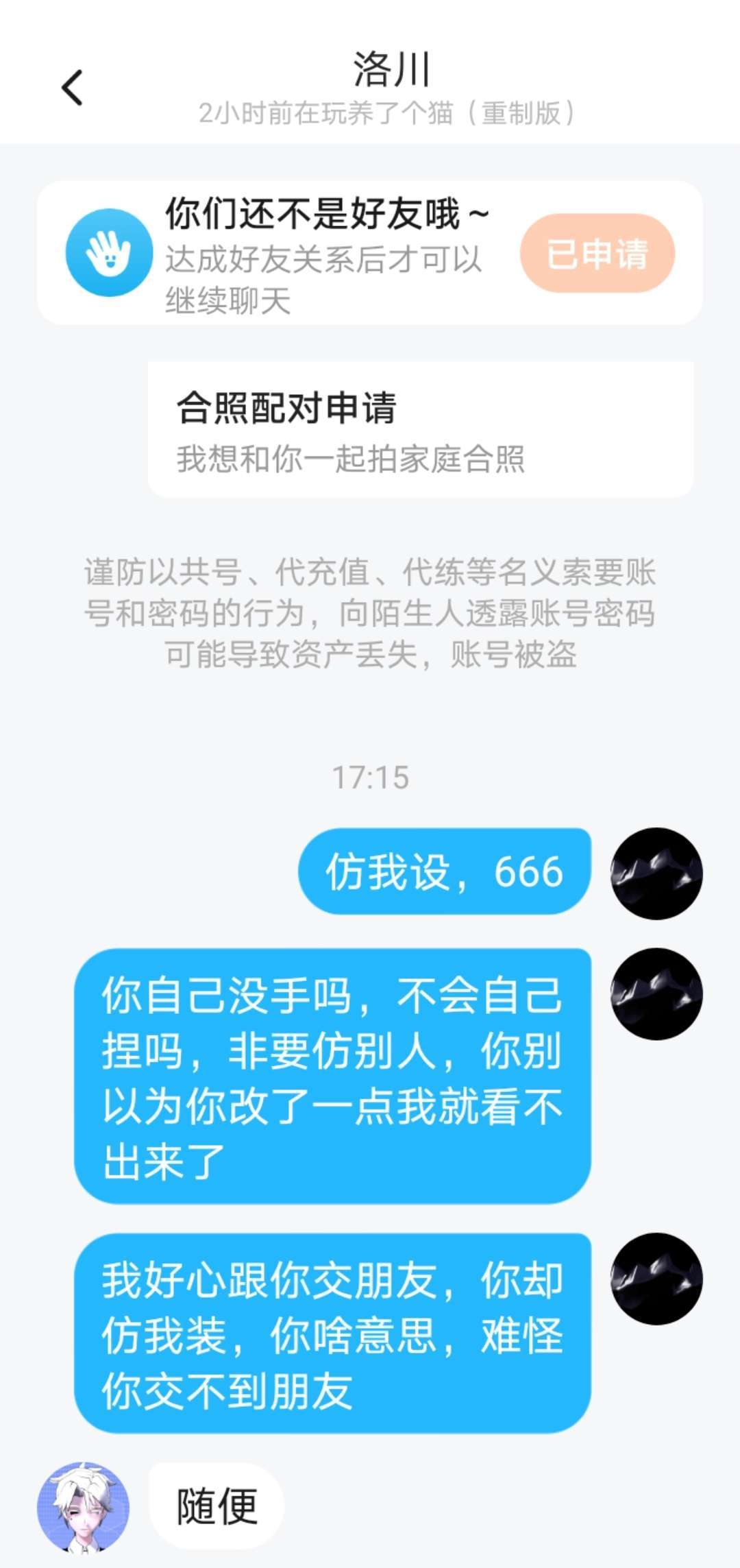 家人们谁懂啊,我好心跟他交朋友,他竟然仿我设,为了看不出来,还改了一点,我真的服了