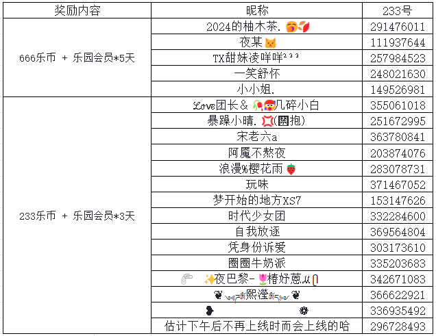 随机抽取15位绘梦师,送出 233乐币 + 乐园会员*3天